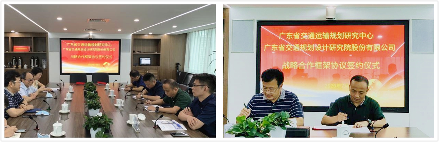 7月8日,我公司与广东省交通运输厅下属广东省交通运输规划研究中心(以下简称“厅规划中心”)隆重举行了战略合作框架协议签约仪式。公司副总经理刘桂红、总经理助理兼规划与交通工程分院院长汪超以及广东省九域工程技术咨询有限公司总经理朱青、副总经理吴桂胜参加了签约仪式。会上,刘桂红副总经理与厅规划中心史焕杰主任分别代表双方共同签署了战略合作框架协议。厅规划中心规划研究室、公路工程咨询室同仁共同见证了签约过程。