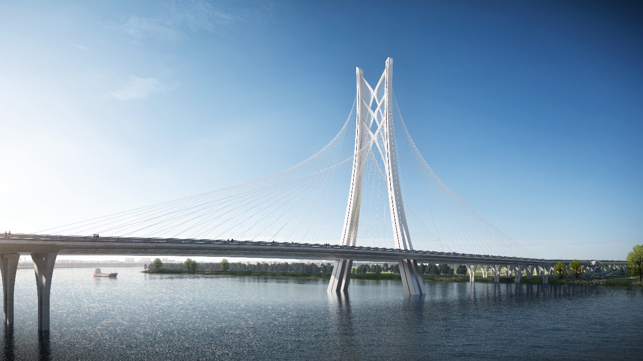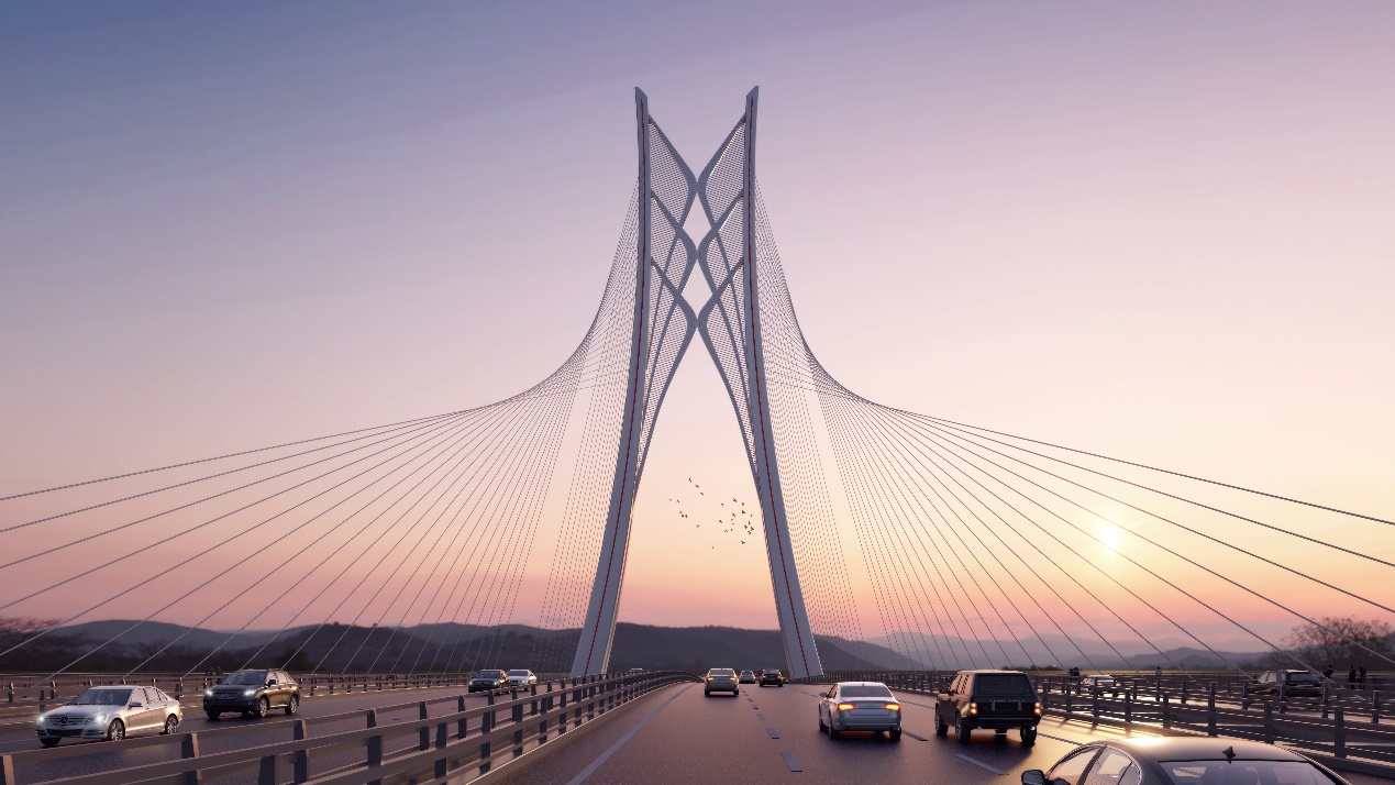 “东江门户,山水丰镜”方案由我公司第四设计分院与何镜堂建筑创作研究院团队共同完成。该方案经过投票评选、专家评审等多轮评选,从全国20家单位、141个桥型方案中脱颖而出,荣获跨东江桥型一等奖。该方案设计提取了古体“丰”字为要素,意在打造城市门户新地标,其造型如四通八达的脉络,亦如山峦叠影立于江上,蕴含惠州山水并美的丰富意境。