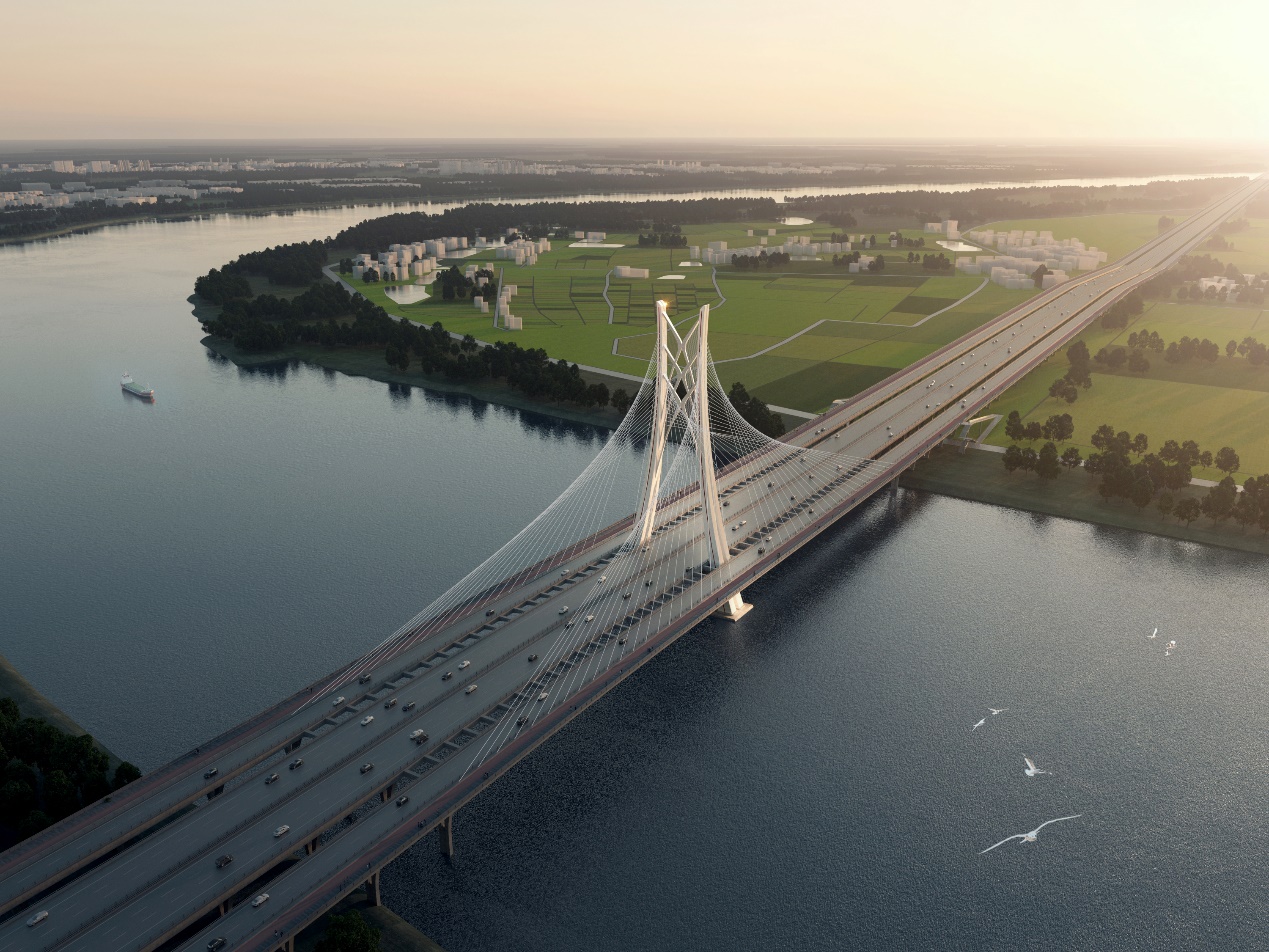 “丰”字交通主框架是《惠州市“丰”字交通主框架总体布局规划》的核心内容。该规划由我公司第四设计分院牵头编制,并已于2020年6月获惠州市人民政府批复同意。《规划》中的一号公路(惠州湾高速)是“丰”字交通主框架的重要一“竖”,是南北交通轴线快速通道。目前一号公路已由我公司完成工可编制,并已顺利通过评审。一号公路的跨东江大桥将采用该“东江门户,山水丰镜”方案。