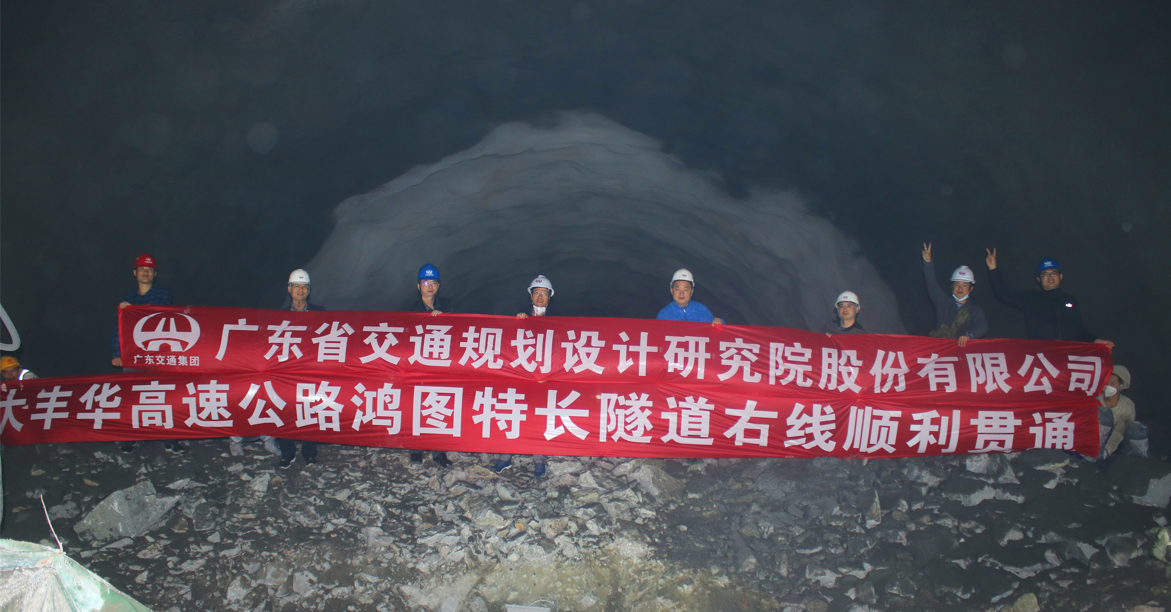 大丰华高速公路丰顺至五华段共有三座隧道,除鸿图特长隧道外,其余隧道均已安全顺利贯通。此次回访重点参观了鸿图特长隧道,其左线长6336m,右线长6350m,采用双向两车道高速公路标准,设计速度为100km/h,最大埋深740m,穿越各期次断裂构造达18条之多,为我公司设计长度最长、埋深最大、地质条件最复杂、预计工期最久的隧道;其竖井深298m,为广东省最深。历经三年多的施工建设,右线隧道已于2021年1月5日实现贯通,左线隧道预计于1月20日贯通。在建设过程中,鸿图隧道施工至预测的富水段附近时,进口右线、左线先后发生高压涌水,单个掌子面最大涌水量3.36万方/天,最大水压4.8Mpa,至隧道贯通,前后共出现了7次高压涌水,总涌水量相当于3个西湖。我公司专业技术人员针对鸿图特长隧道高压突涌水的情况,进行了多次优化设计,采取全断面前进式帷幕预注浆,成功穿越断层高压涌水段,并对隧道衬砌结构及防排水体系进行了专门设计,较好地解决了突涌水难题。