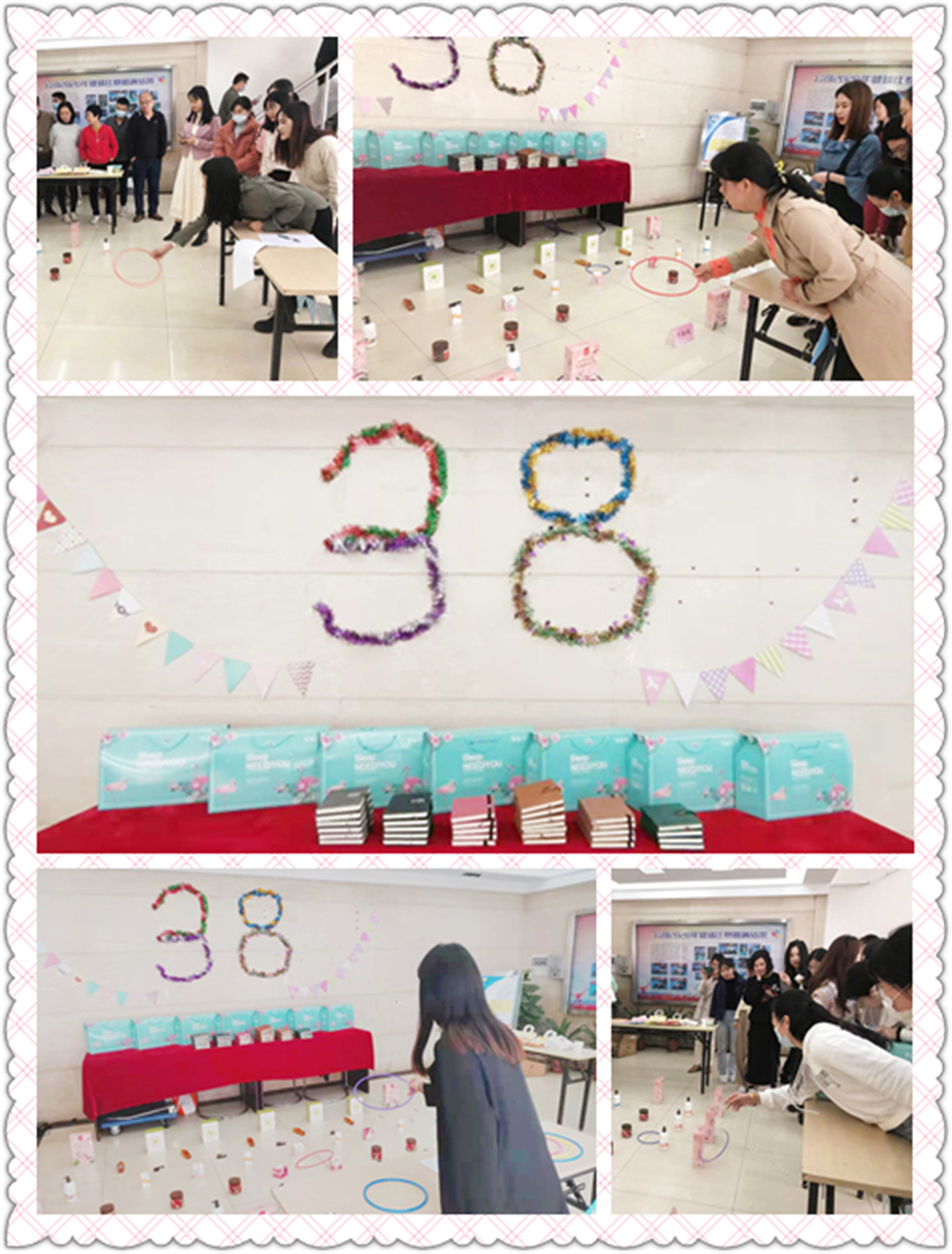 节日当天,公司工会组织开展了“趣味套圈”活动,奖品池中摆满了面膜、口红、水乳套装、防晒霜、花茶等小礼物,参与者每人3个圈,站在规定的距离按顺序套礼品;面对满满的礼品,大家个个摩拳擦掌,使出浑身解数,而一旁的观战者们不时传出笑声、掌声和欢呼声,跃跃欲试。