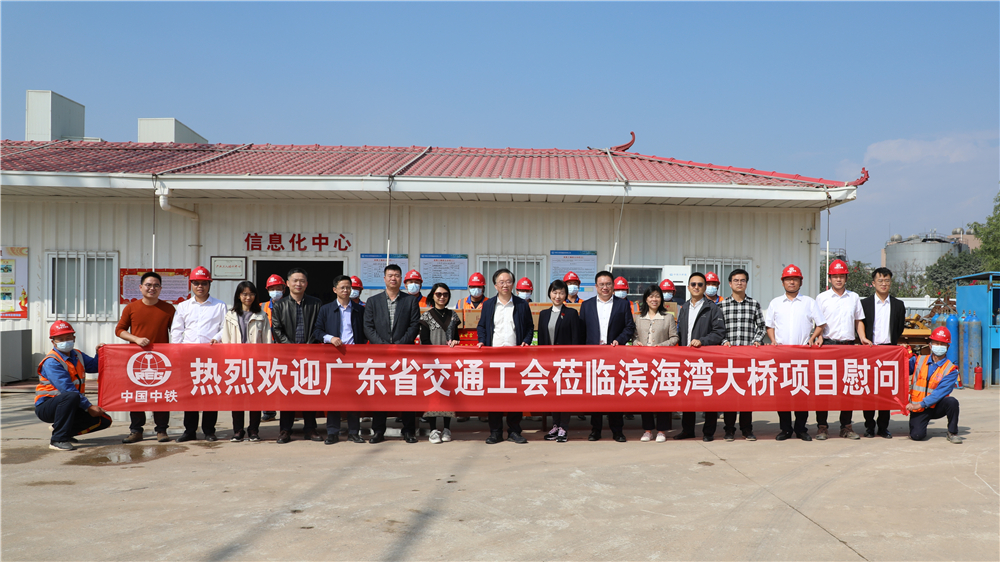 2022年1月6日,广东省交通工会唐丹主席带队,主任科员林猛光、吴艺琳等一行领导到我公司设计的东莞市滨海湾大桥项目开展调研慰问活动,为奋战在省重点工程项目的一线员工送来交通运输系统“娘家人”的温暖关怀和新春节日祝福。我公司党委副书记、副总经理、工会主席陈贤文,总工程师、“南粤工匠”获得者梁立农,科技质量部主任、“省五一劳动奖章”获得者林敏,综合管理办公室主任陈枝洪,第五设计院总工程师宁立与项目负责人,以及中铁大桥局四公司副总经理、广东分公司总经理代强波,中铁大桥局四公司滨海湾大桥项目总工程师康宇飞等参加了慰问活动。