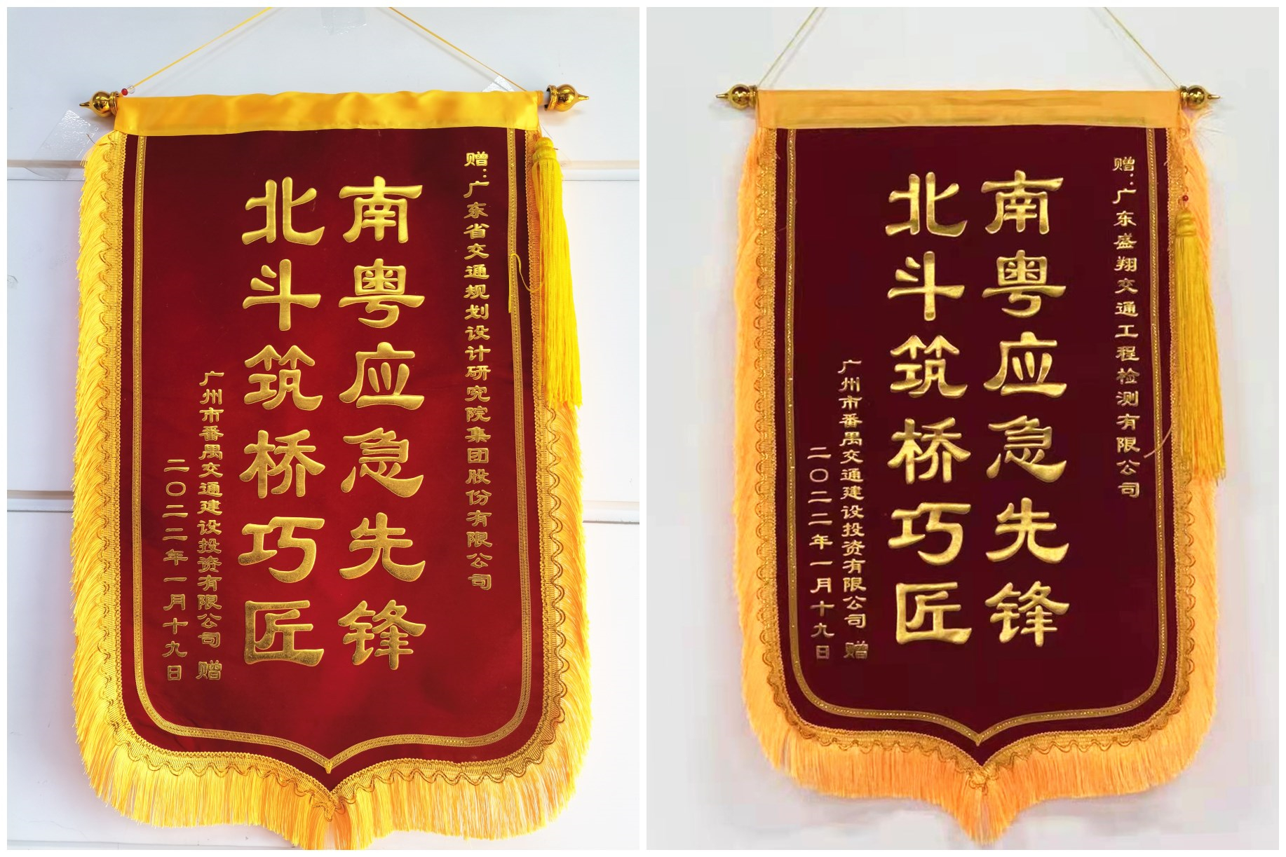 1月19日上午11时,番禺北斗大桥提前3个月恢复通车。北斗大桥的重新开放,将大大减轻西樵大桥、沙湾大桥的交通压力,提升番禺、南沙两地居民出行的便利性。我集团与下属二级子公司盛翔检测公司获授“南粤应急先锋,北斗筑桥巧匠”锦旗及表扬信。