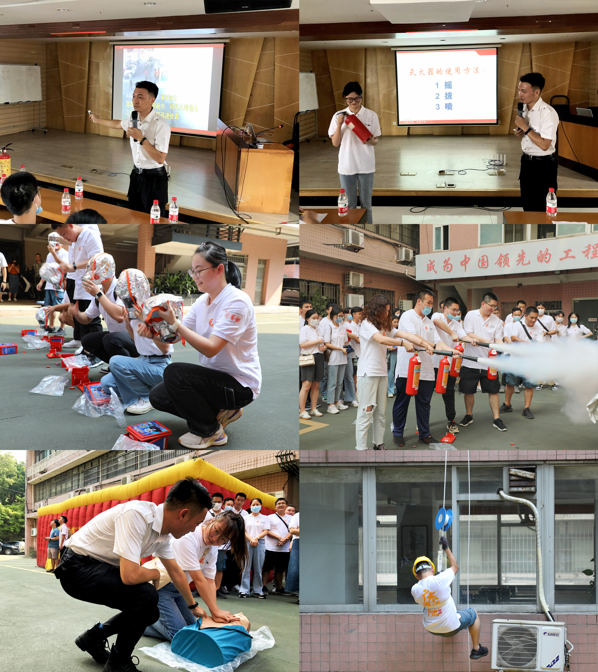 此外,为提高员工安全意识,培养员工在突发情况下的避险自救能力,集团邀请了消防教育专业机构举办消防知识讲座,并在现场开展浓烟环境逃生、高楼缓降逃生、防毒面具与灭火器使用演练以及心肺复苏示范教学,有效提高了员工的安全意识和面对突发险情的处置能力。