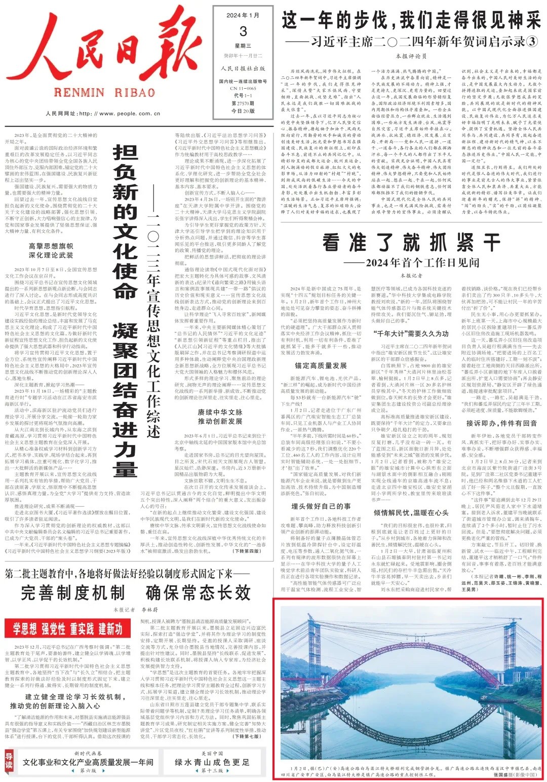 伟人故里,渠江河畔。2024年1月2日,由公司承担设计的镇巴(川陕界)至广安高速公路通广A2标段(以下简称“镇广高速通广段”)控制性工程白马渠江特大桥主拱圈精准合龙,为下阶段上部钢格梁安装打下了坚实的基础。大桥合龙得到了媒体的广泛关注。1月3日出版的《人民日报》头版以图片新闻形式进行了报道。