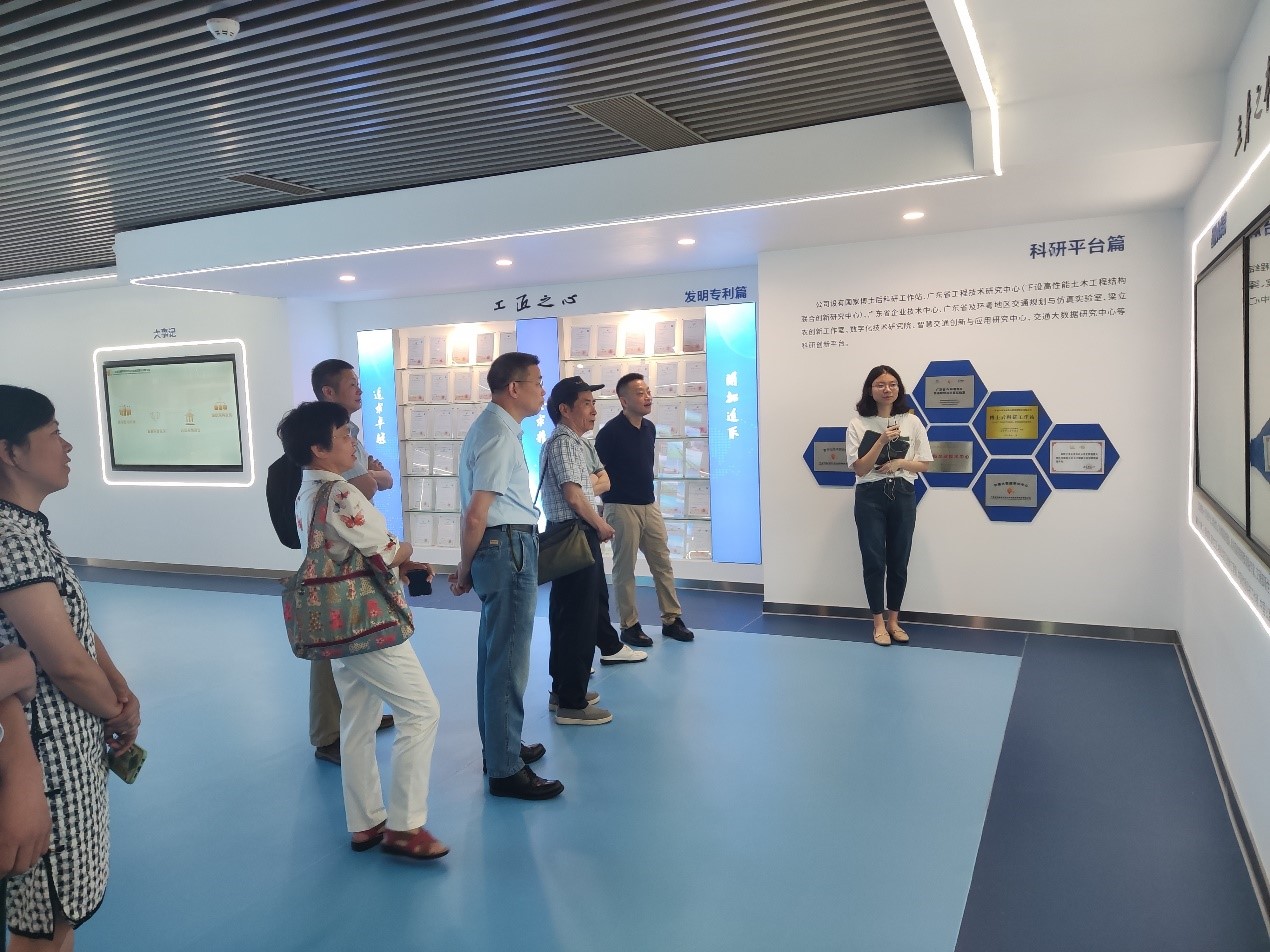 副总经理蔡小杨、陈贤文陪同省公路学会一行参观了企业展厅,展示了广东交通院的奋进之路、立身之本、工匠之心、品质之光、领先之道、信仰之力,彰显了公司“一路领先”的企业精神。