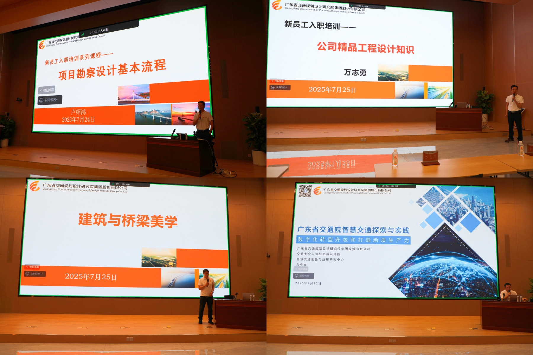 与此同时,为拓宽新员工视野,加强多学科融合学习,公司特邀各业务板块技术骨干授课,就项目勘察设计基本流程、精品工程展示、建筑与桥梁美学、智慧交通与自动驾驶、信息化及数字化转型等专业知识进行了专项培训,这些不同专业视角的专业知识讲授,不仅拓宽了新员工的视野,同时也展现了公司在多元化业务领域的创新实力和综合竞争力。