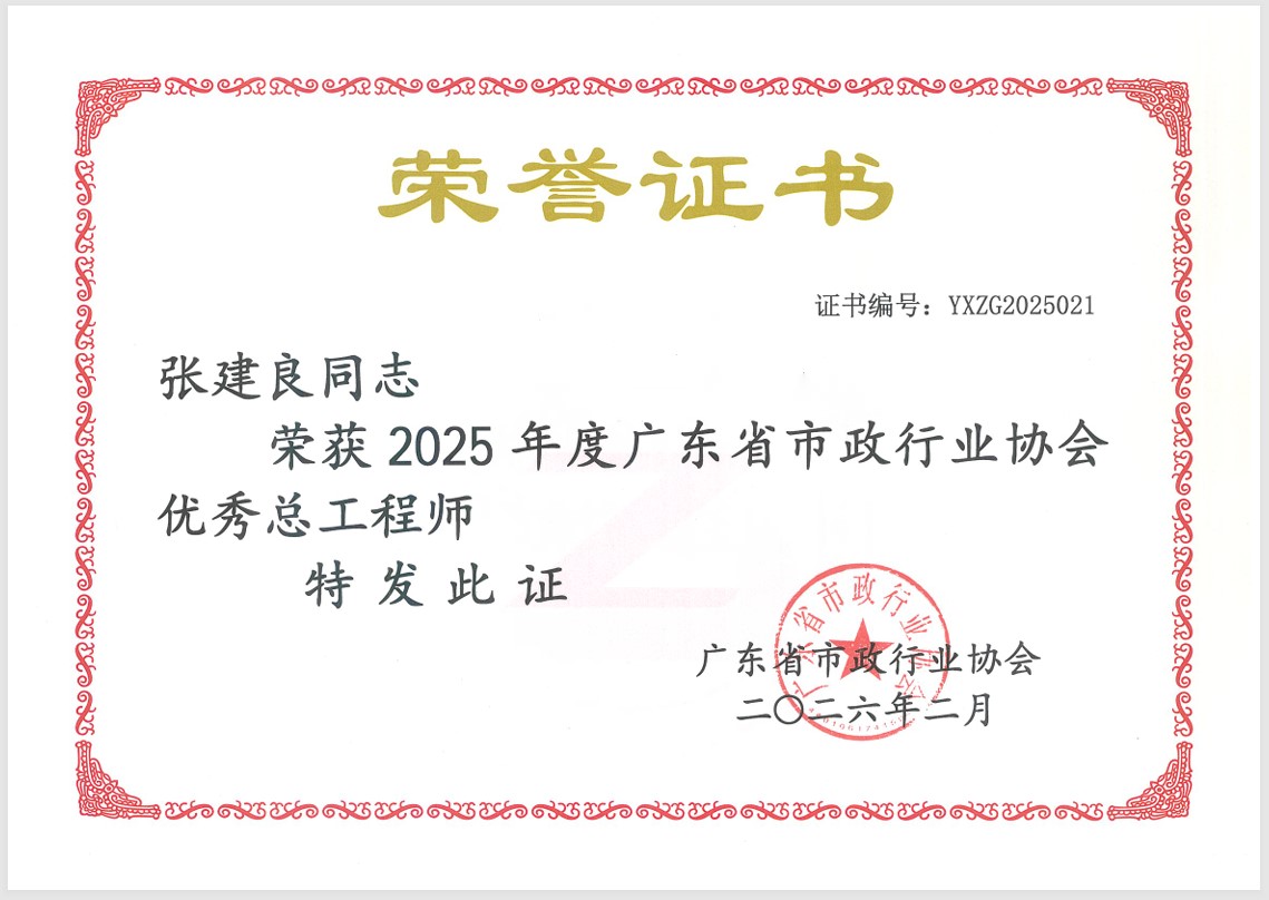 为表彰先进、树立榜样,激发市政行业工程技术人员的积极性与创造性,推动行业高质量发展,广东省市政行业协会组织开展了2025年度优秀总工程师、优秀技术工作者评选活动。经过严格评审与层层筛选,公司副总工程师张建良凭借在给排水领域的深厚造诣与突出贡献,荣获“广东省市政行业优秀总工程师”称号;第一市政设计院副院长李钊依托在道路设计领域的扎实功底与创新实践,荣获“广东省市政行业优秀技术工作者”称号。