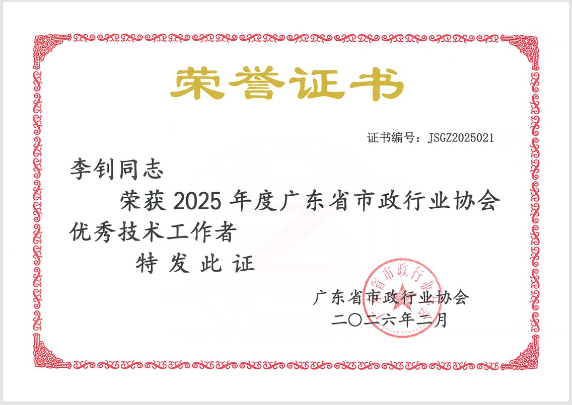 此次张建良、李钊同志荣获省级行业荣誉,既是对两位同志个人专业能力、敬业精神与突出贡献的高度认可,也是对公司在市政工程领域技术实力、人才培养体系及创新成果的有力佐证。公司将以此为契机,进一步加强人才队伍建设,鼓励技术创新实践,以更多优秀成果赋能广东省市政行业高质量发展,为城市建设与民生改善注入持续动力!