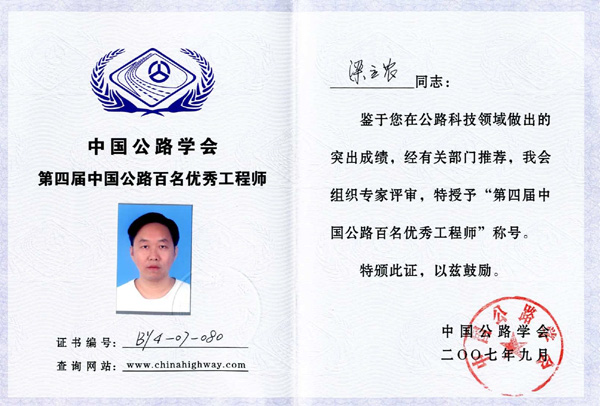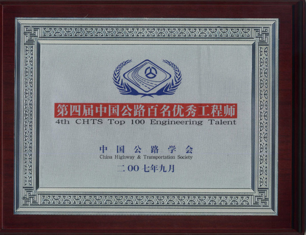 荣获“第四届中国公路百名优秀工程师”称号