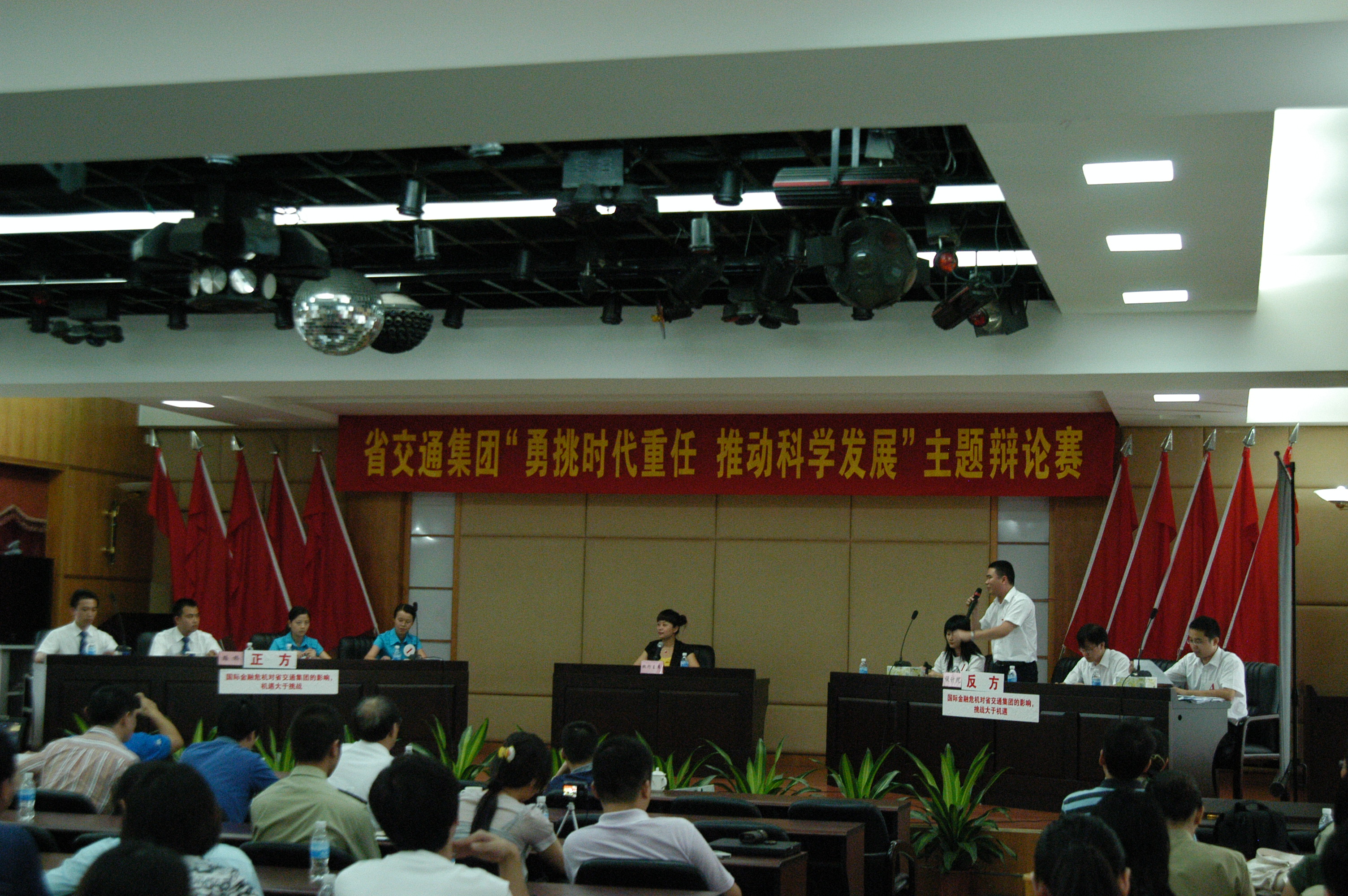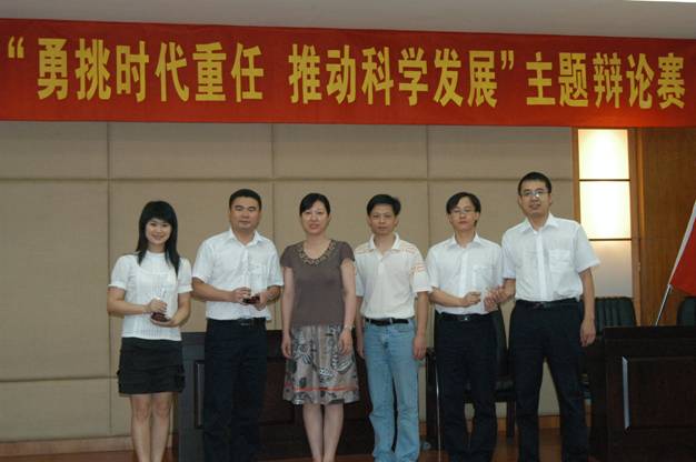 7月8日上午,由省交通集团组织的“勇挑时代重任,推动科学发展”主题辩论赛决赛在花都落下帷幕,我公司辩论队(决赛辩论队员周鑫、王一休、唐文、王玉文)舌战群儒,乘胜追击,最终摘得桂冠,荣膺一等奖! 此次比赛得到了公司领导及辩论队员所在部门的大力支持和关心,在为期两个多月的三轮比赛中,我公司队员充分体现“团队共进、竞争共赢、创新求精、奉献求真”的核心价值观,不畏艰难,愈战愈勇,最终取得了骄人的成绩,既充分展示了公司员工的聪明才智,也为公司赢得了集体荣誉。 特此报喜。 行政事务部