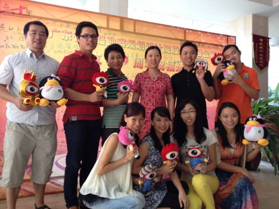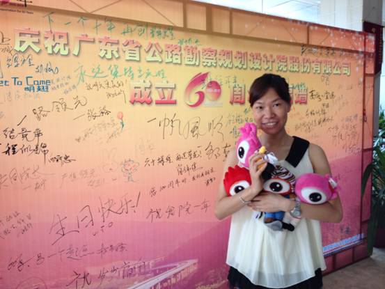 9月21日上午,公司在一号楼大堂举行了一场别开生面的颁奖仪式。李琴总经理助理为“司庆微(博)祝福互动”活动的获奖网友颁发纪念品。仪式上,网友们在公司“祝福墙”上书写祝福,并合影留念。 本次活动的纪念品是新浪和腾讯微博的限量公仔,网友们见了很心动,抱着可爱的公仔纷纷在祝福墙前秀上笑脸照。