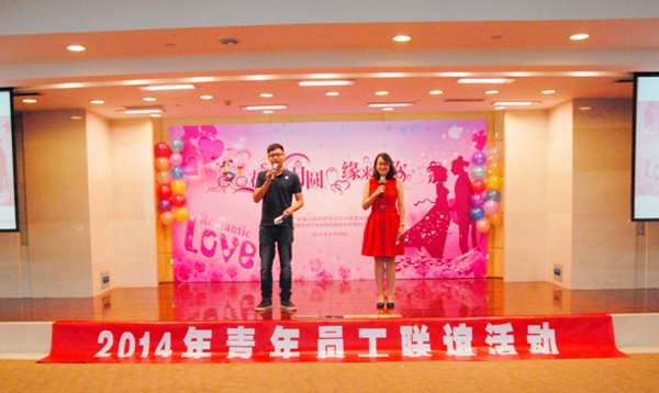 2014年8月29日下午6时,燕岭大厦燕翔厅彩球飘飘,欢歌笑语,“寻找有缘人”环节答案揭晓,现场两对单身青年成功牵手。公司两位男青年分别牵手联谊单位审协广东中心(国家知识产权局专利局专利审查协作广东中心)的两位女员工。主办方为牵手成功的员工准备了象征甜蜜爱情的鲜花和巧克力,在鲜花和巧克力传递的那一刻,全场响起了十分热烈的祝福的掌声。