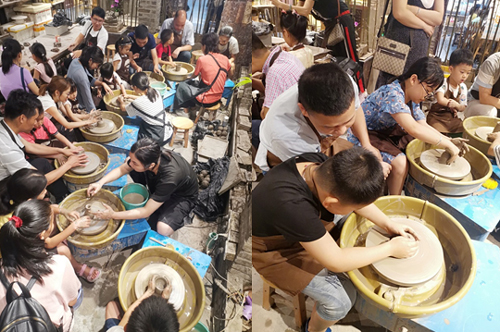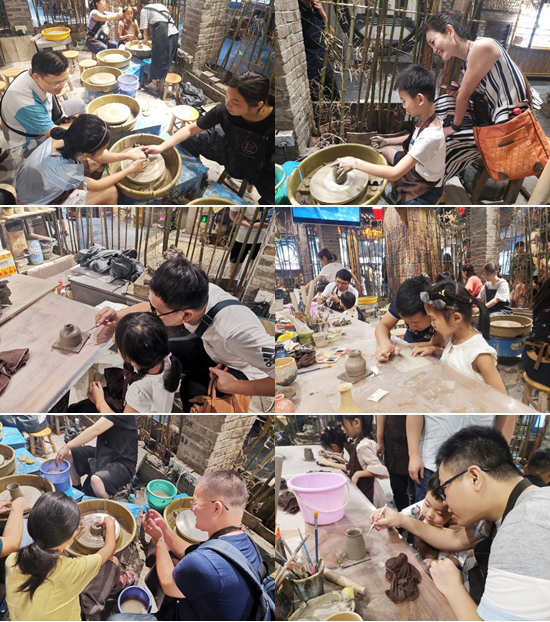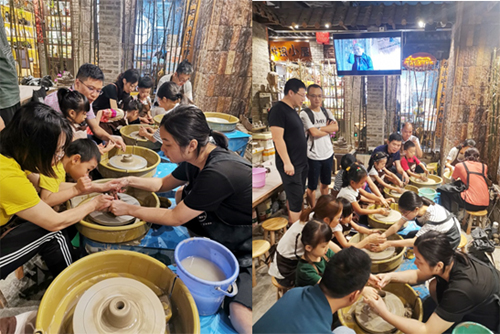 活动现场,各位同事带着子女,在专业老师的讲解和指导之下,一起拉坯、刻画,亲手制作出独一无二的陶艺作品。一个个形状、花纹各异的陶瓷坯件之上,都凝结着一段段独特的回忆以及一份份珍贵的亲子情。