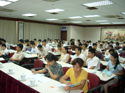 从院先进性教育日程表上可以看到,7月9日星期六,院党委班子成员从参加集团第二批先进性教育活动暨纪律教育月活动动员大会回来的第二天,便带领该院党群工作部的同志行动起来。从制订先进性教育实施方案、撰写动员报告、制作院先进性教育手册,到建立网上“先进性教育导航”专栏、制作统一的专题考勤及会议记录本、订阅学习资料等一步到位;到提交院党委审议定稿,再到上报集团督导组,只用了三天时间。在院动员大会召开前,所有学习资料、支部专题会议(学习)记录本均发至支部或党员手中;在院内部网开辟的 “先进性教育导航”专栏,院内所有先进性教育的相关信息均能在栏目中看到,栏目特指定专人负责,每天更新;在院内两栋办公楼还设置了“先进性教育群众监督意见箱”,使群众监督贯穿活动始终。
